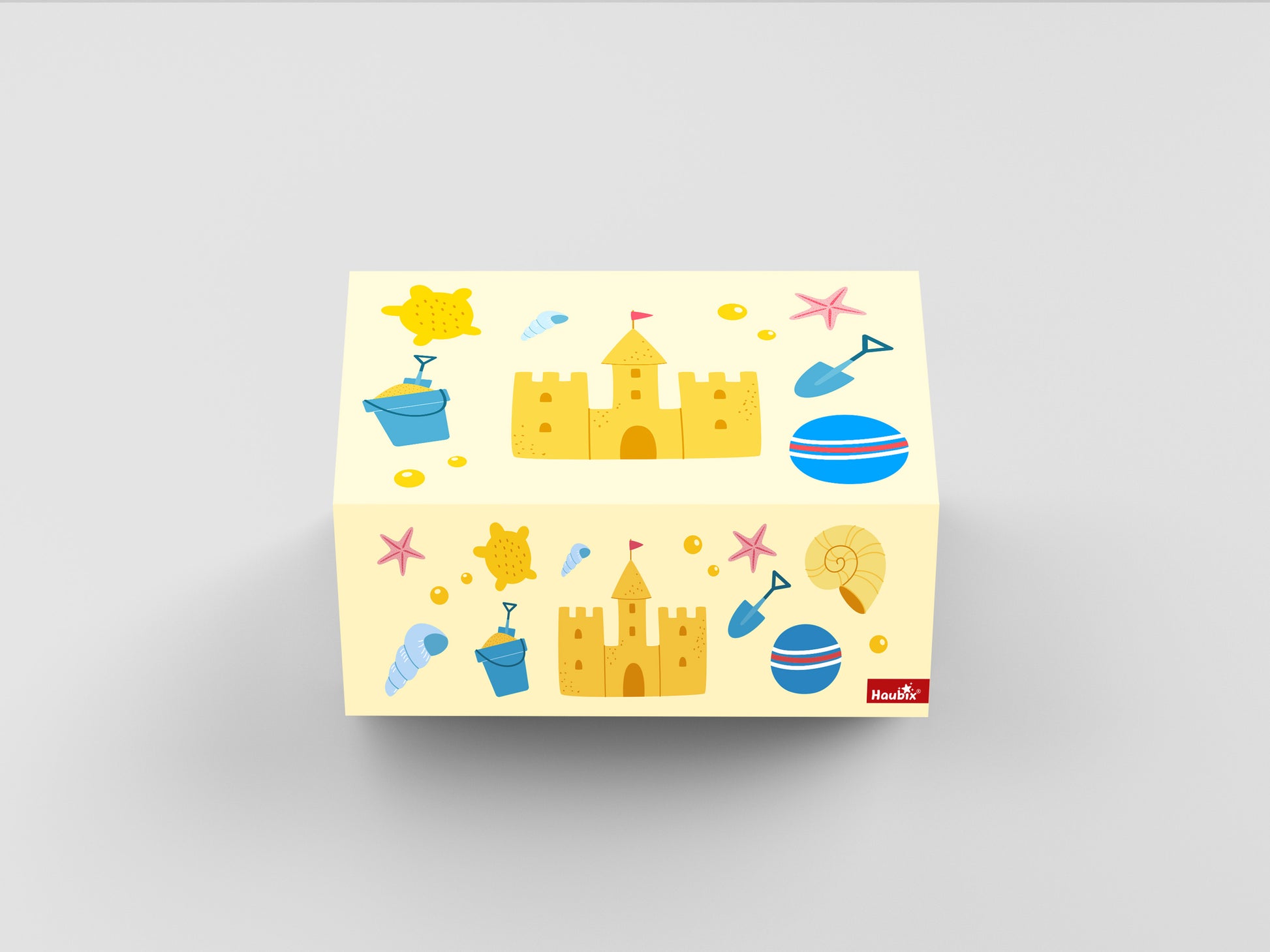 Die Sand-Haube bringt Strand-Feeling in den Garten oder das Kinderzimmer. Muscheln, Eimer und Schaufeln animieren Kinder zum kreativen Spielen und Nachbauen von Sandburgen. Perfekt für kleine Strandfans und Entdecker:innen, die gern die Welt aus Sand gestalten.